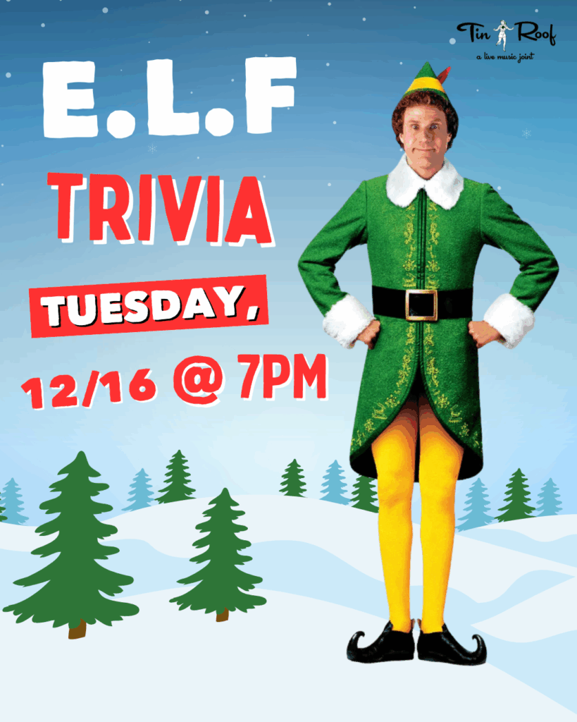 If you know the 4 main food groups of the Elves, this trivia is for you! Keep the change, ya filthy trivia animals! We're turning into Santa's workshop this Tuesday night and you're invited to our Elf-themed Trivia night. Free to play, all ages welcome, max of 6 people per team. Email: ChrisStubbs@TinRoofBars.com to reserve your table!
